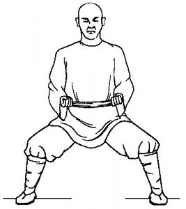 Мабу — стойка всадника. Расставить ноги приблизительно на ширину четырех ступней; носки направлены строго вперед, ступни параллельны. Согнуть ноги в коленях так, чтобы бедра приняли горизонтальное положение. Колени не выходят за линию носков ступней. Грудь немного подать вперед, живот втянуть. Спина прямая, позвоночник перпендикулярен полу, колени развернуты наружу.