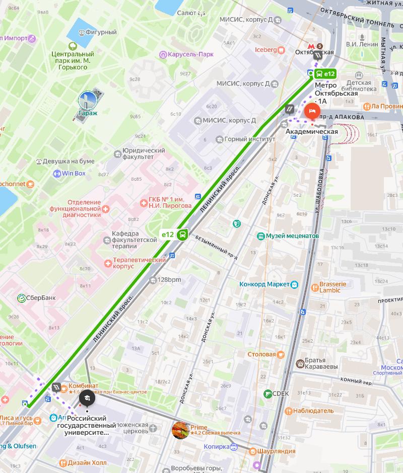 До Российского государственного университета им. А.Н. Косыгина (место проведения основных мероприятий программы), можно: — дойти пешком (15 минут) — доехать на автобусах-экспрессах e10, e12 (одна остановка) — доехать м1, м16, 297 (две остановки)