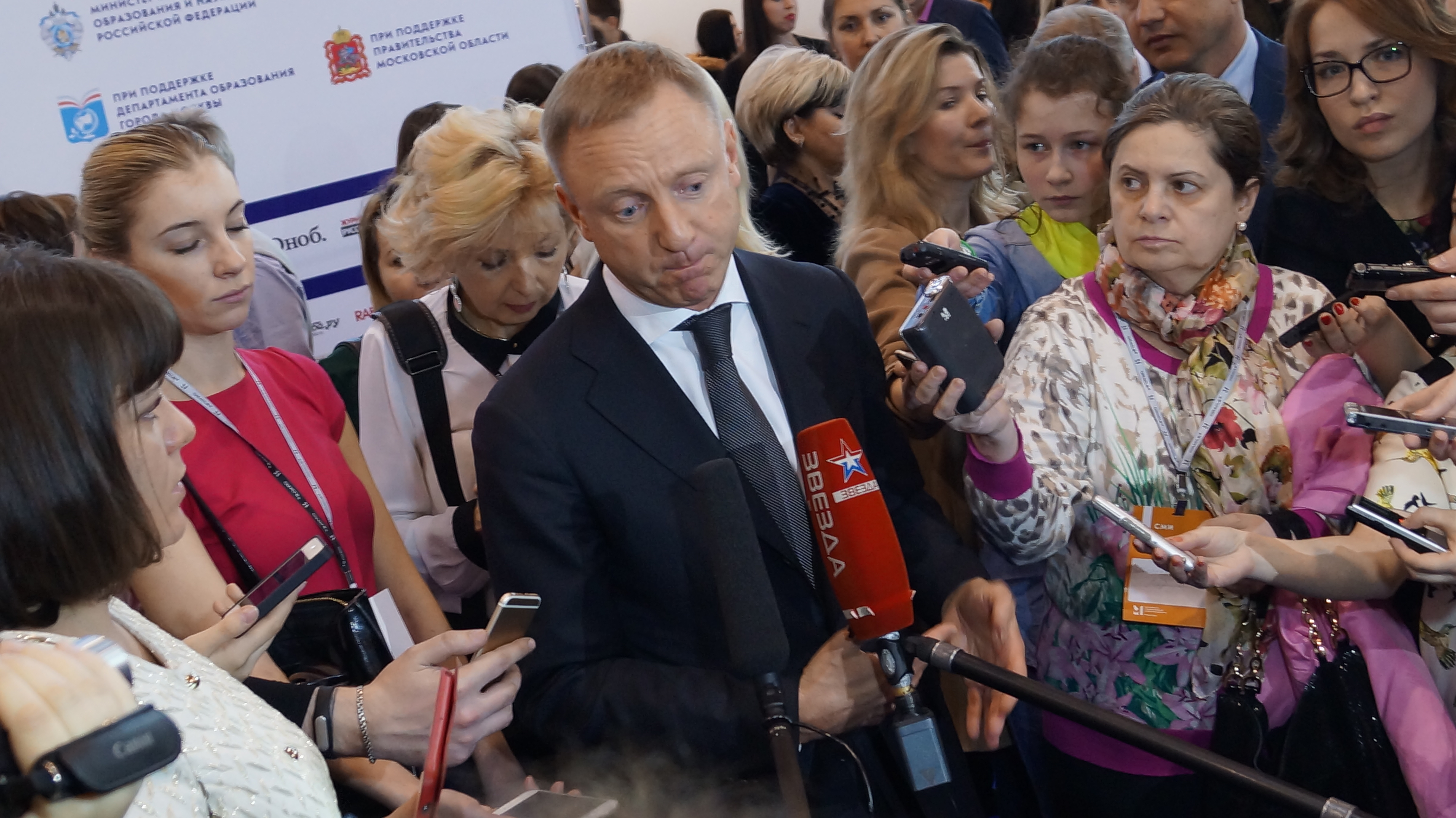 На фото: Финальные мероприятия 2016. Пресс-проход министра образования РФ Дмитрия Ливанова на ММСО. Наши спецкоры — тут как тут. |
