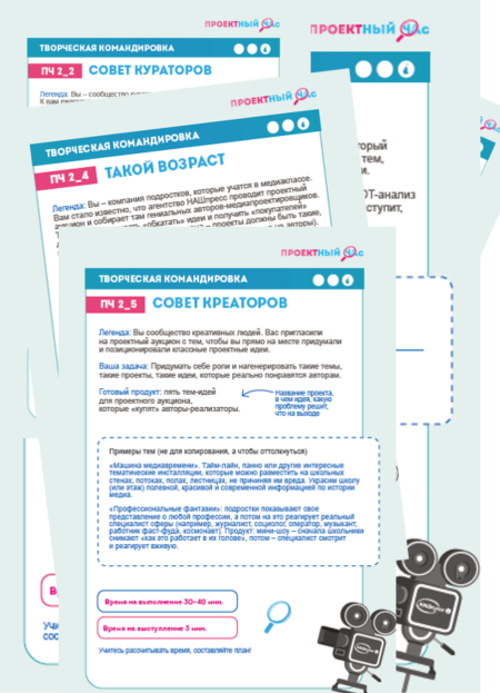На занятии: симпозиум «гениальных авторов-медиапроектировщиков», генерирование тем проектов в заданных условиях, представление тем, защита и обсуждение.