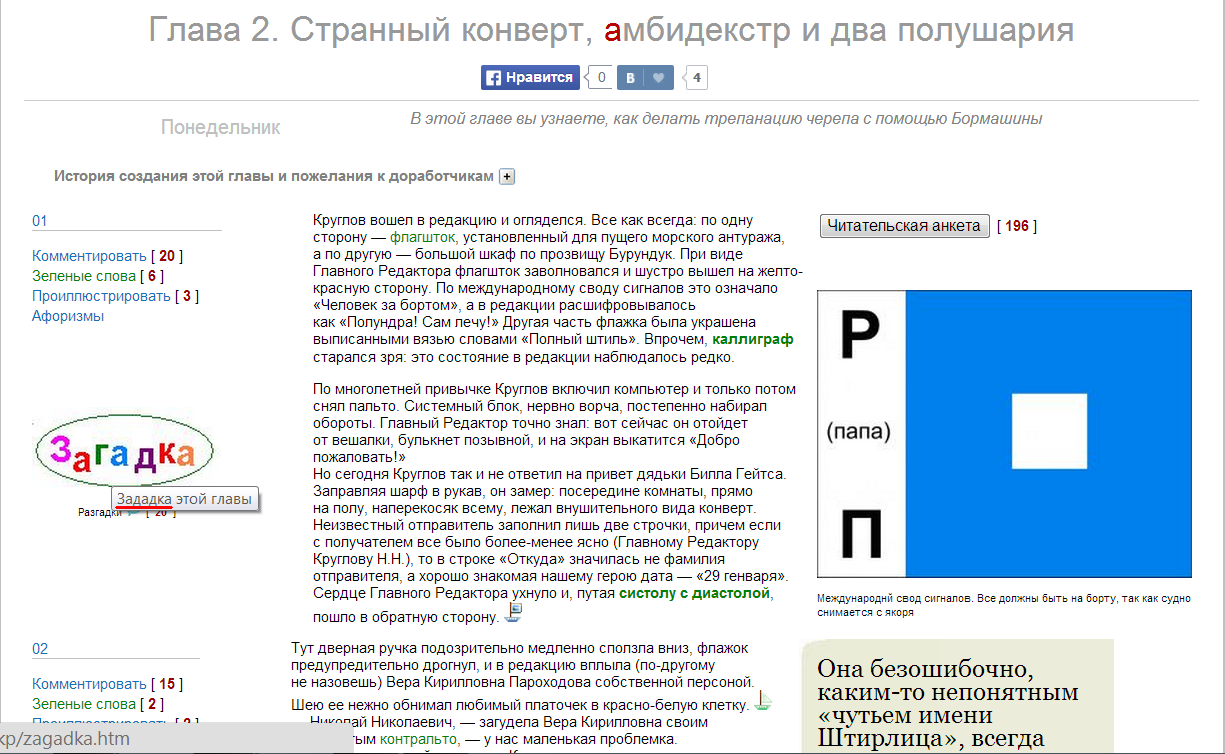 Да ознакомилась. Интересно, как авторы придумали семафорную азбуку и с чего началась кража.