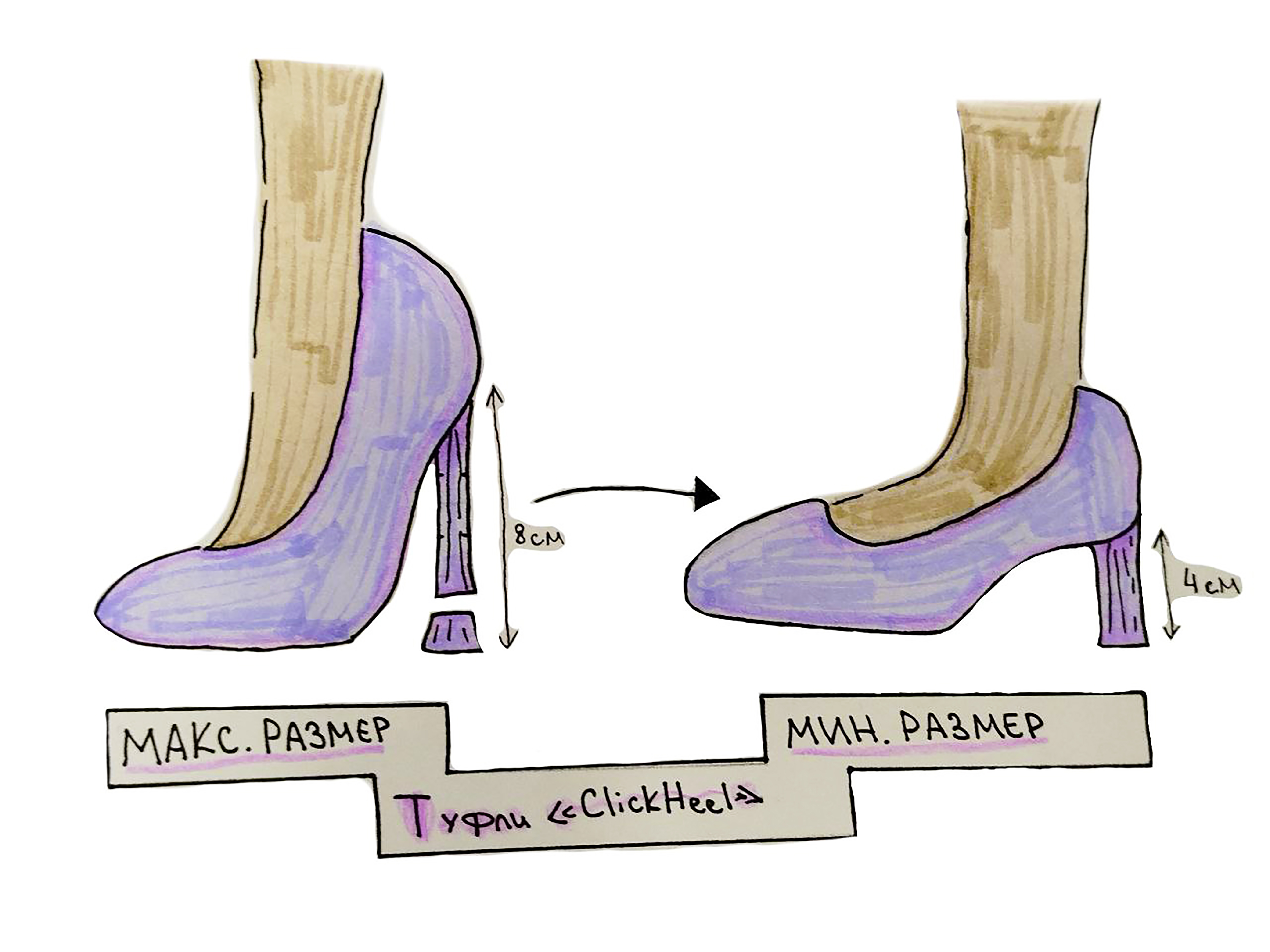 Так родилась идея: а что, если создать туфли, которые смогут превращаться из моделей на каблуке в удобные балетки?
