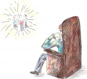 Только вот закрадываются у меня сомнения, что иллюстратор не умеет лица рисовать, ибо все герои почему-то стоят спиной к зрителю.