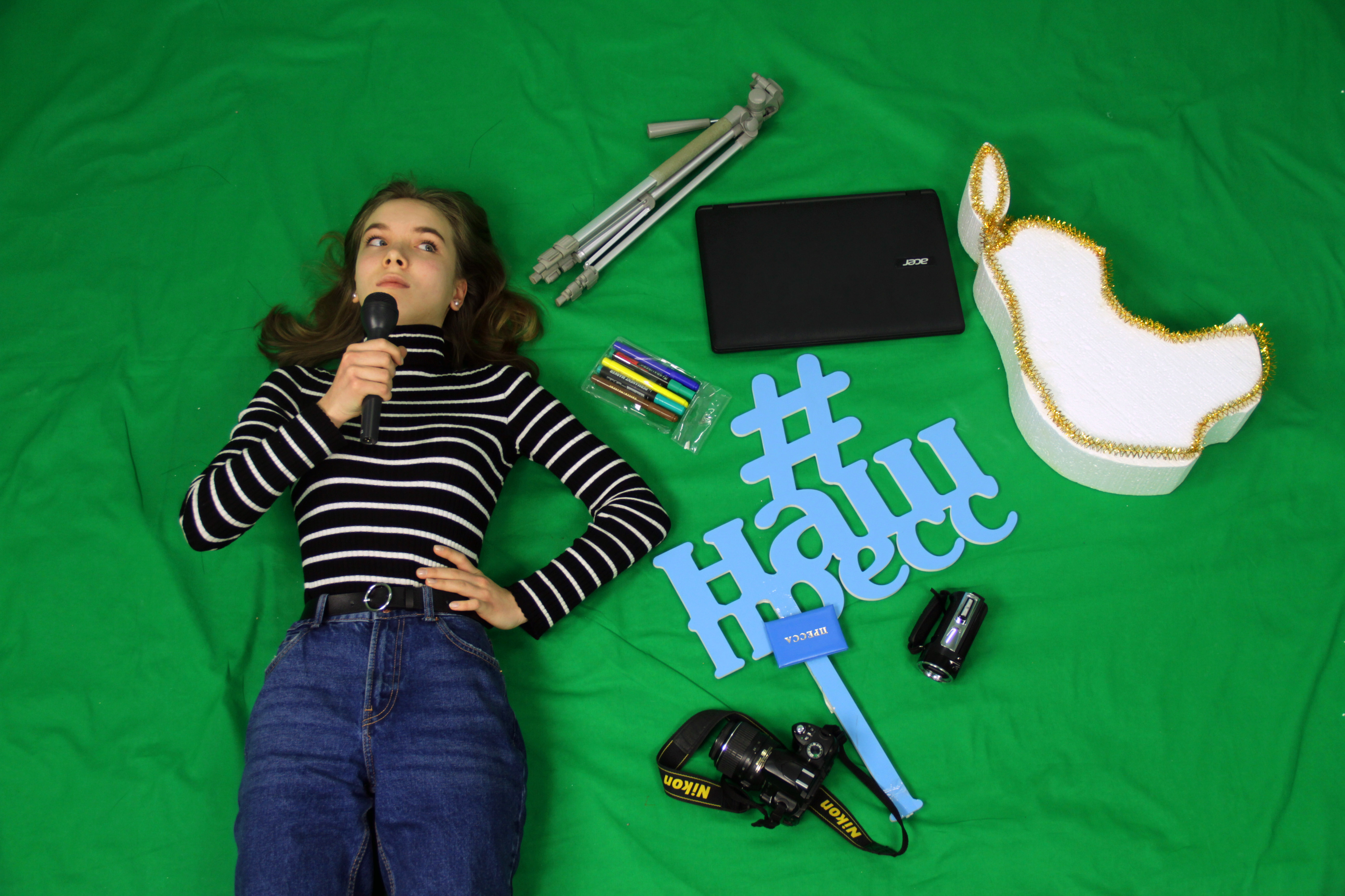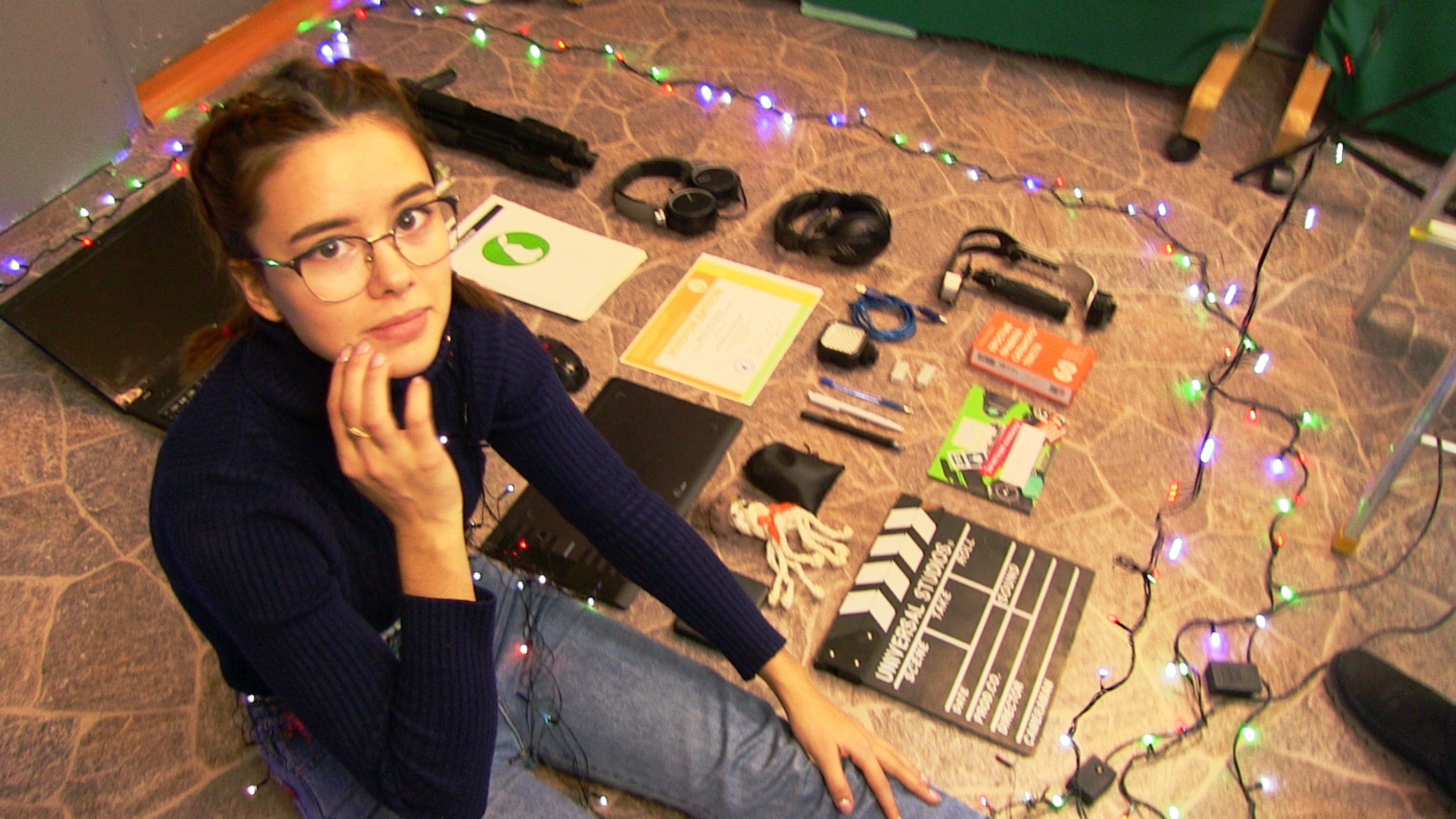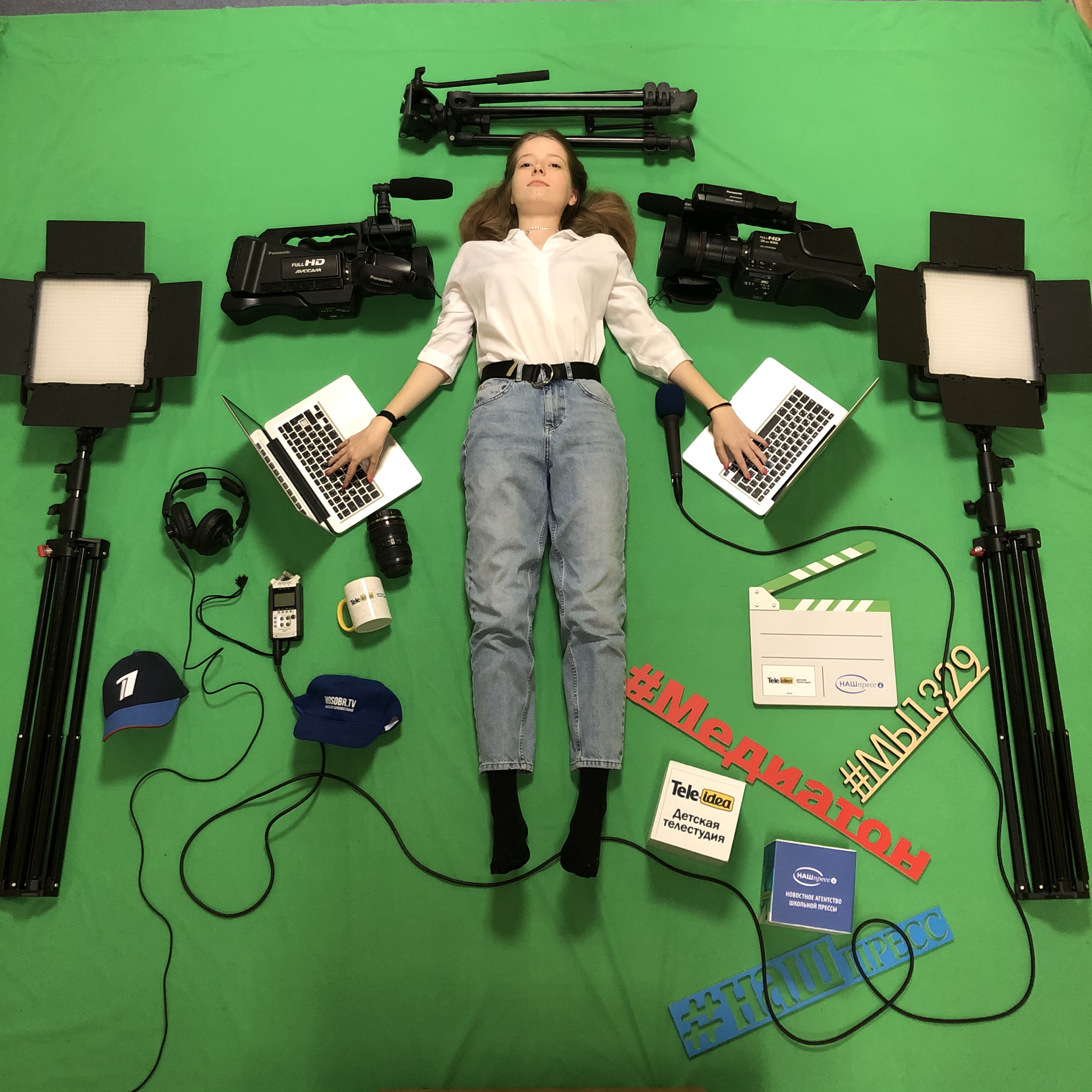 Мысль мы прочли так: героиня фото увлекалась медиатворчеством, даже побывала на первом канале и на МосОбре, а в новом году она сосредоточится на работе в студии Телеидея, школьной телепрограмме Мы1329, Медиатоне и проектах НАШпресса. Фотография хороша и по мысли, и по композиции, и по общему впечатлению, которое получает зритель. Хромают: название, четкость фокуса.