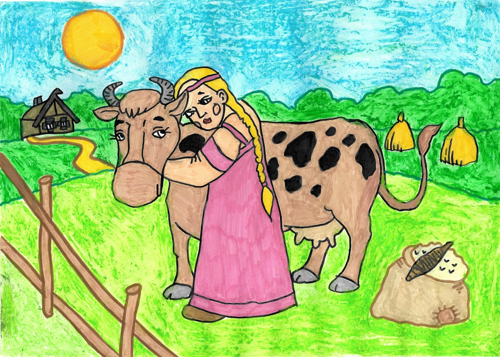Жила-была девочка Хаврошечка. Она была сиротой и работала с утра до ночи для злой мачехи и её ленивых дочерей. У Хаврошечки была только одна подруга — добрая коровушка.