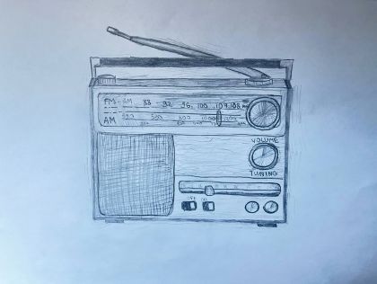 Я изобразила скьюоморфизм — старое радио, которое выглядит как настоящая физическая кнопка, чтобы показать, как медиа-дизайн имитирует реальный мир