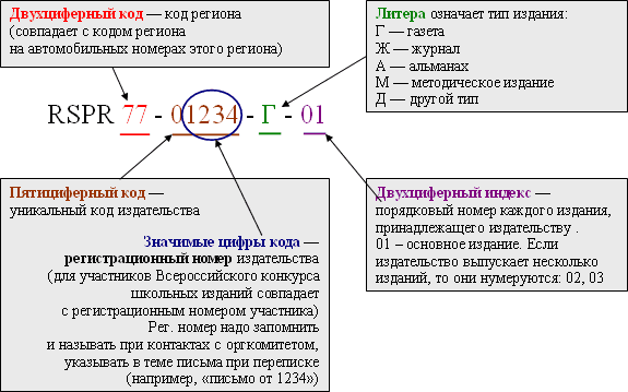 Каждая редакция имеет свой регистрационный номер в реестре, а вся печатная продукция (газеты, журналы, альманахи), которые она выпускает, снабжены RSPR-кодами. RSPR-код рекомендуем указывать в выходных данных, а штрихкод размещать на обложке (первой полосе).